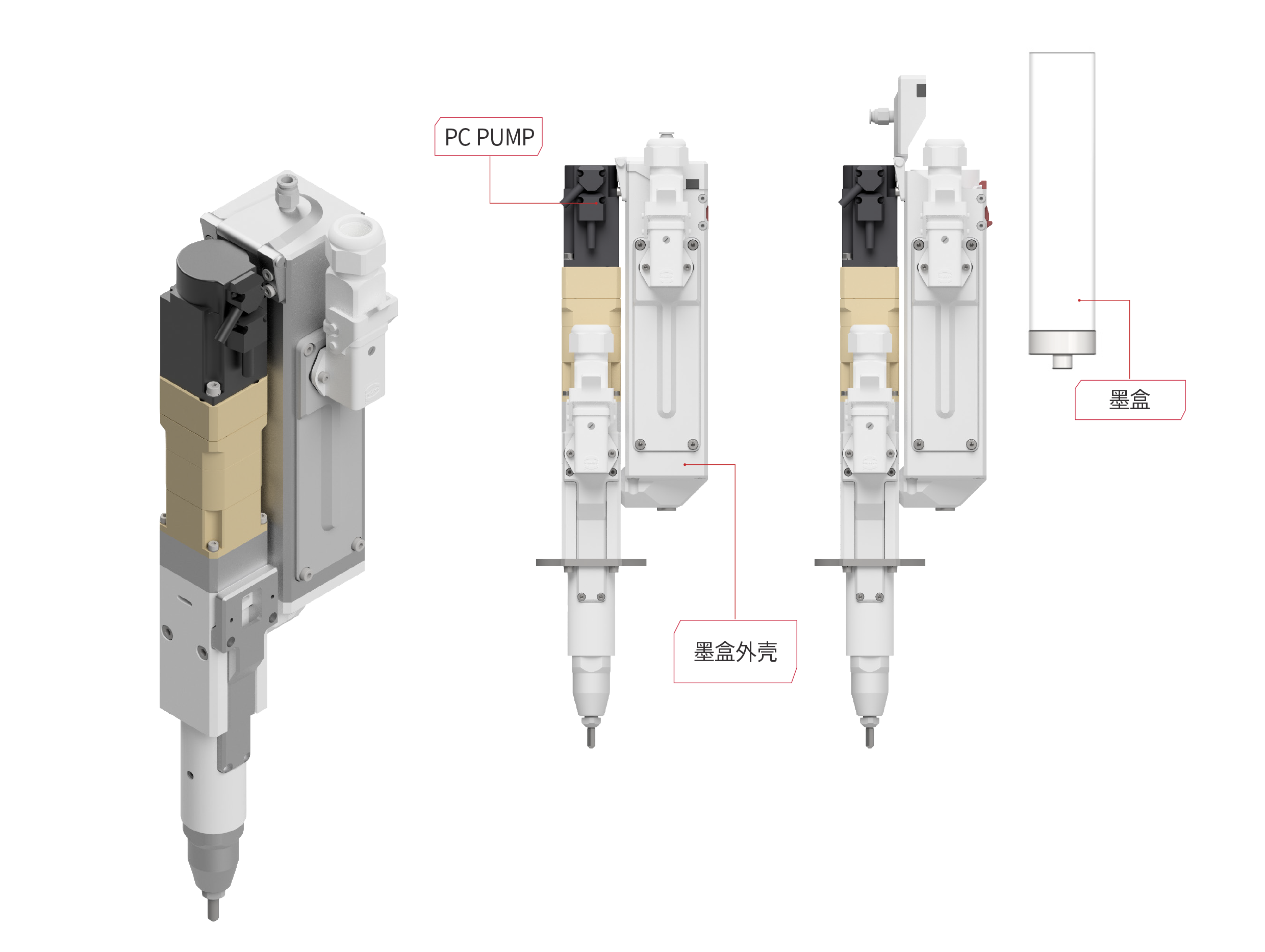 | 可更换墨(300cc) | ~最高 6bar | 气压 | 伺服电机 | 1cc/rev. | 5Kg |